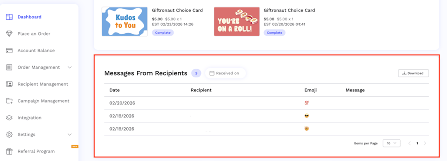 We’ve added a new Messages from Recipients section to the dashboard, giving you a centralized place to view recipient feedback.